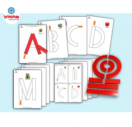 a) a construção das LETRAS DO ALFABETO BASTÃO com as PEÇAS CONSTRUTORAS sobre a FICHA inserida no TABLET OG