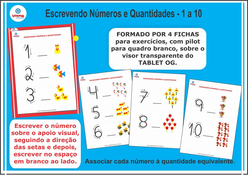 - 1 MÓDULO de FICHAS ESCREVENDO OS NÚMEROS E QUANTIDADES de 1 a 10