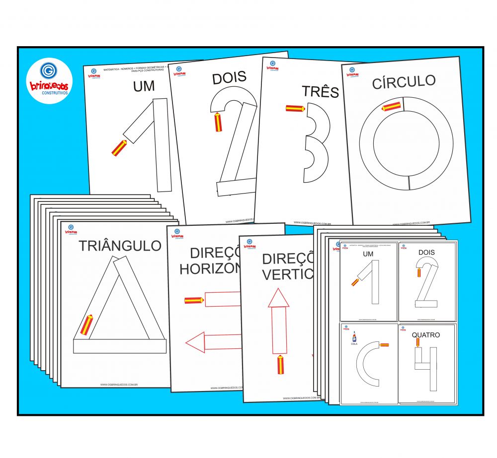 - 1 MÓDULO com FICHAS para MATEMÁTICA que contém 1 IMAGEM POR FOLHA dos NÚMEROS DE 0 a 9, das FORMAS GEOMÉTRICAS CÍRCULO, QUADRADO e TRIÂNGULO e das SETAS DIRECIONAIS nos sentidos HORIZONTAL e VERTICAL