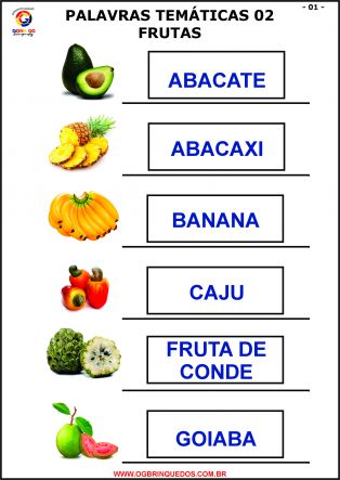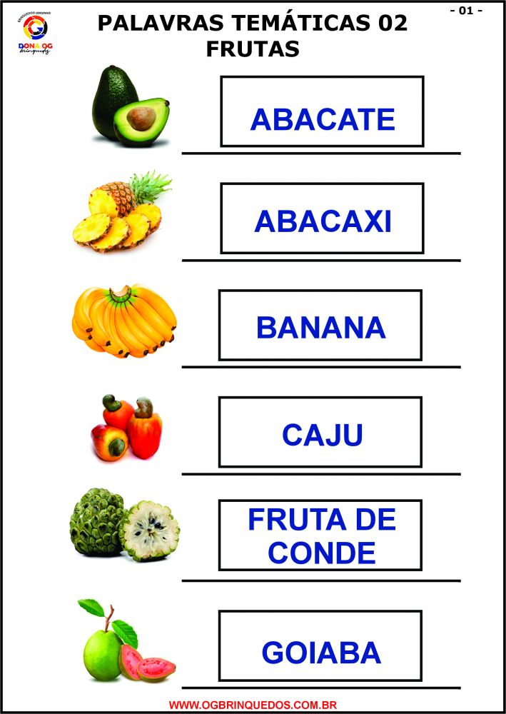- Fichas extras com o nome impresso de cada FRUTA, para atividades de associação.