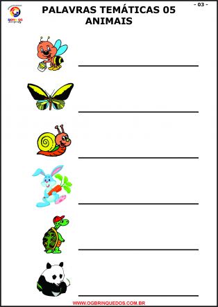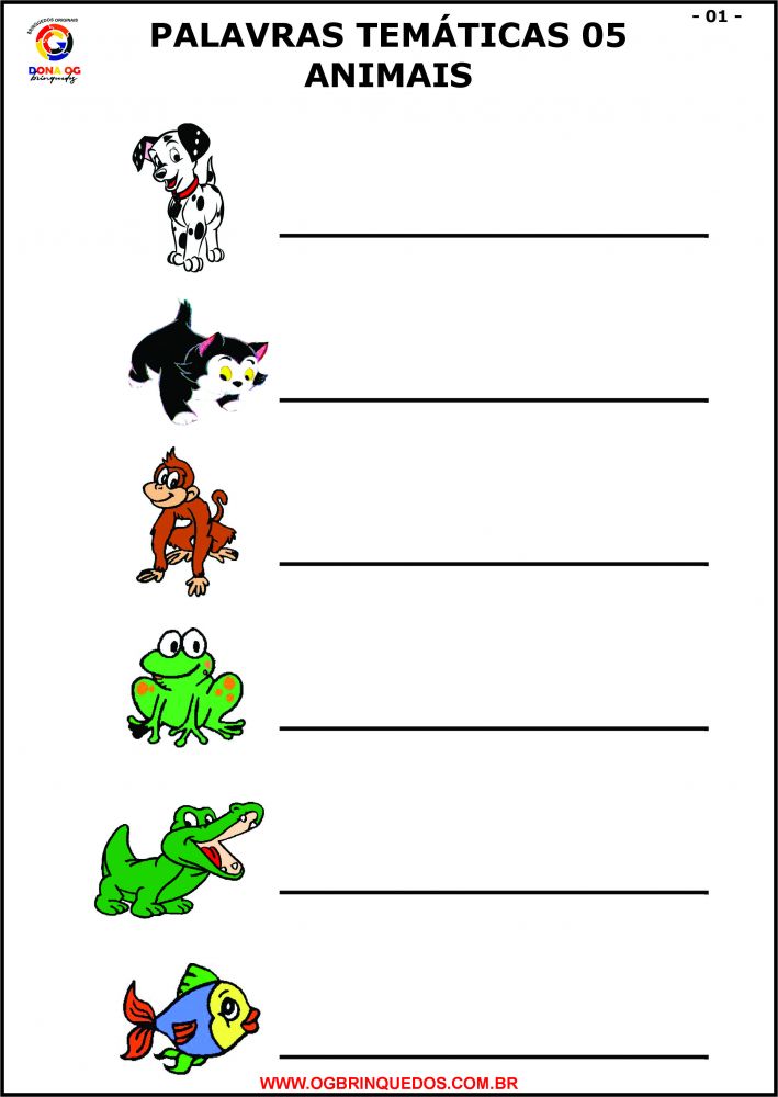 - Na primeira coluna, fotos reais de 6 ANIMAIS por folha.
