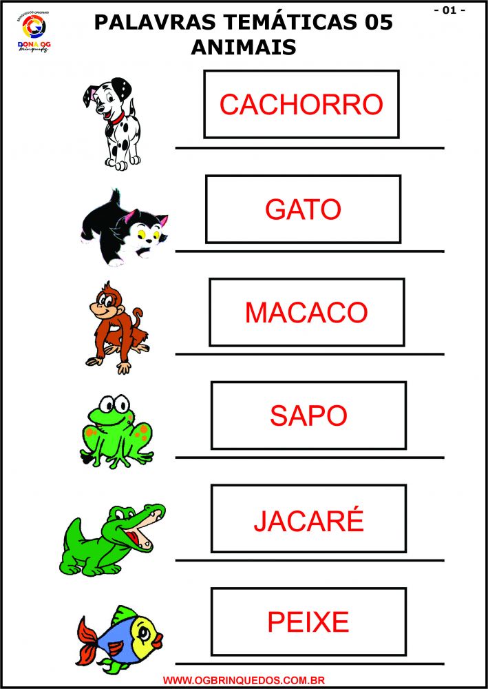 1 - Etapa 1 – Associação: a criança observa a imagem e encaixa o nome correspondente do ANIMAL ilustrado.